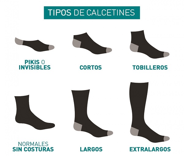 TIPOS DE CALCETINES Actualmente, en el mercado hay gran variedad de calcetines. Desde los más tradicionales (por encima de los tobillos) a los más modernos (con 5 dedos, de rejilla o impermeables).